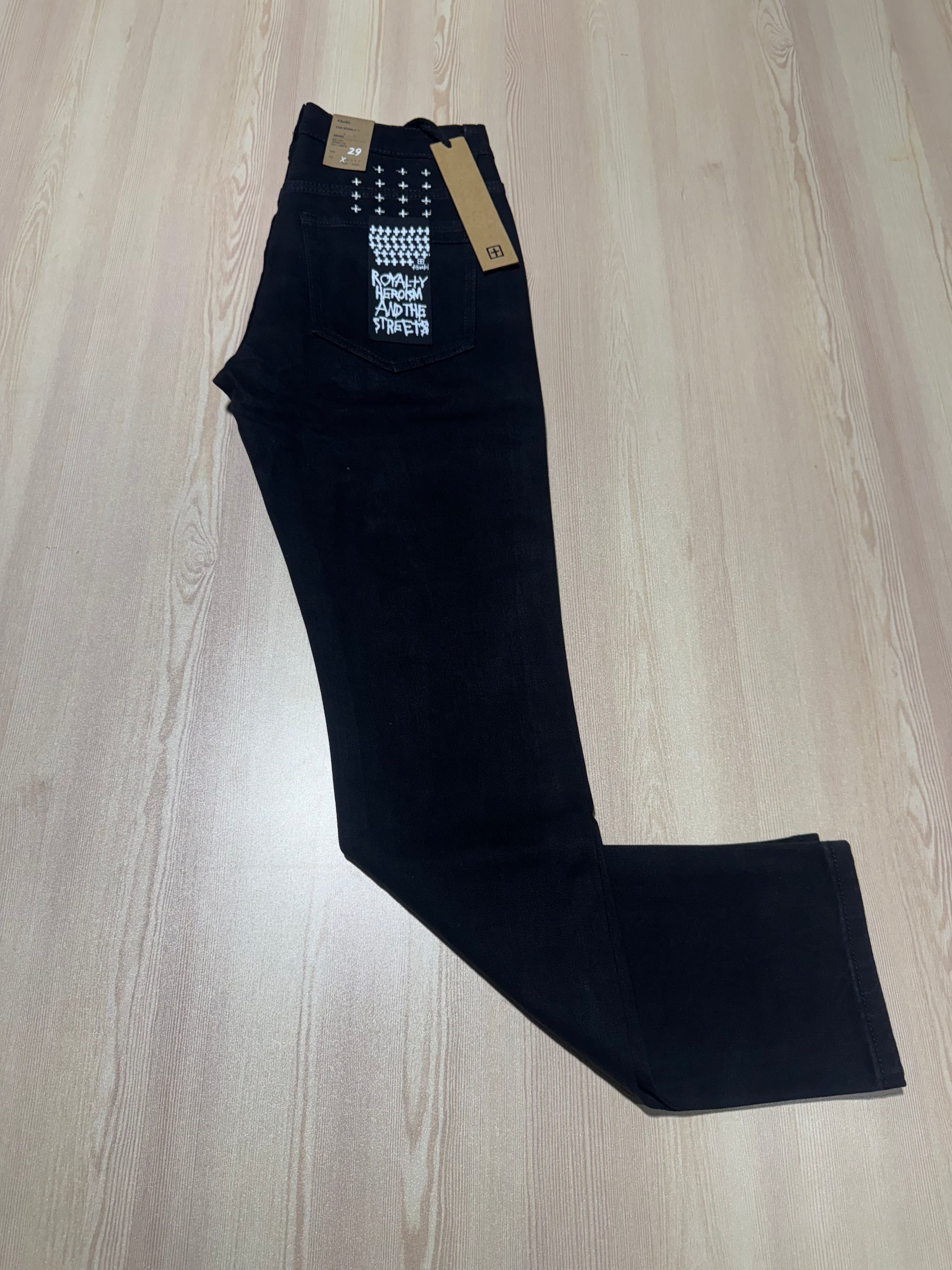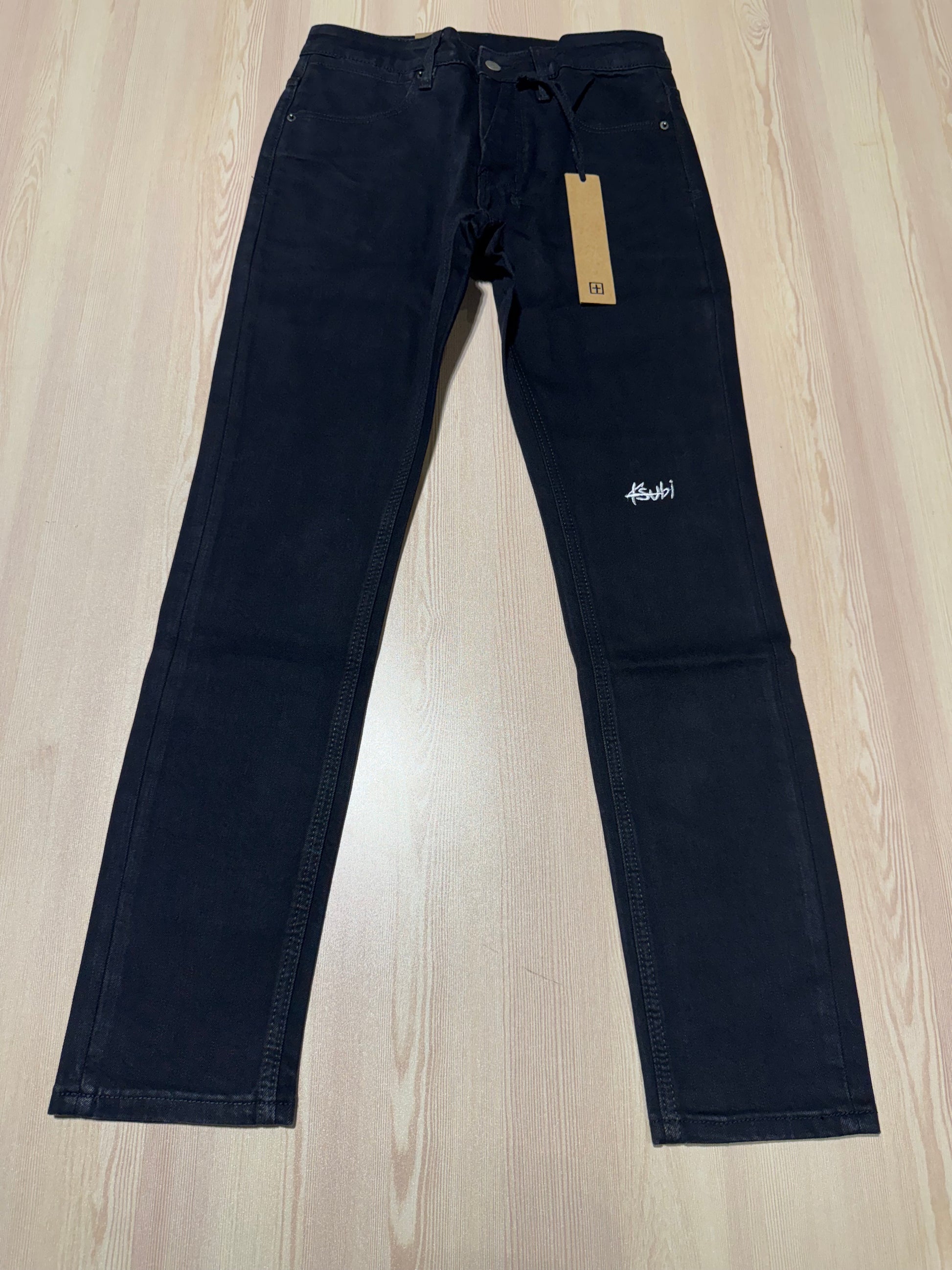 Get the perfect slim fit with our Black Ksubi Jeans. Featuring sleek black fabric and Ksubi embroidery, these jeans are both stylish and comfortable. Upgrade your wardrobe with these versatile and trendy jeans.