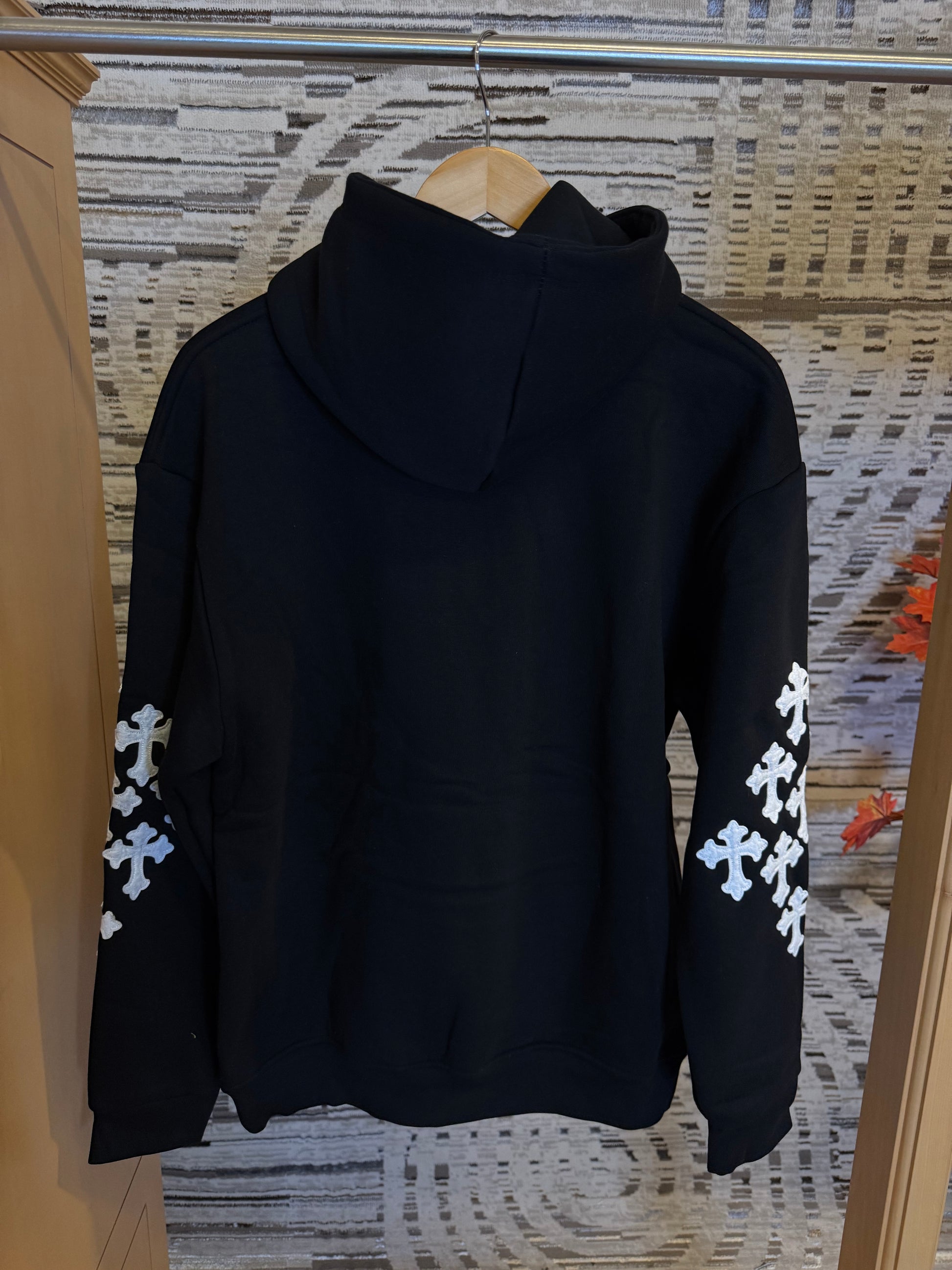 Introducing our Cross Sign Hoodie - the perfect combination of warmth, quality, and comfort. Made with the softest material, this baggy hoodie features a bold cross sign design. Stay cozy and stylish with our high-quality, must-have item.