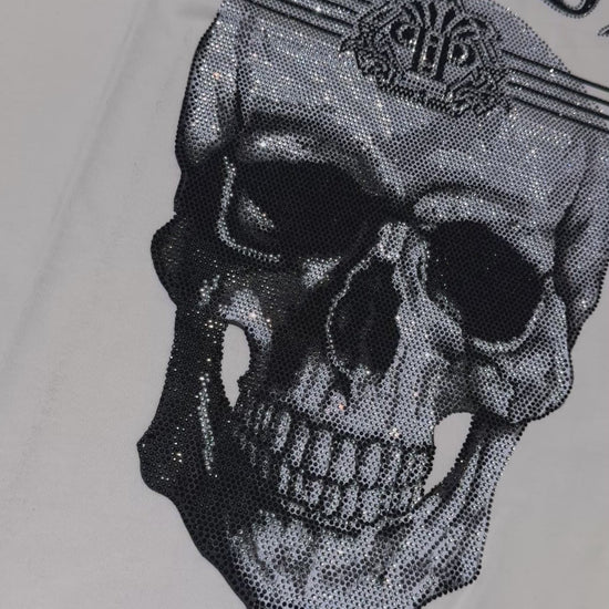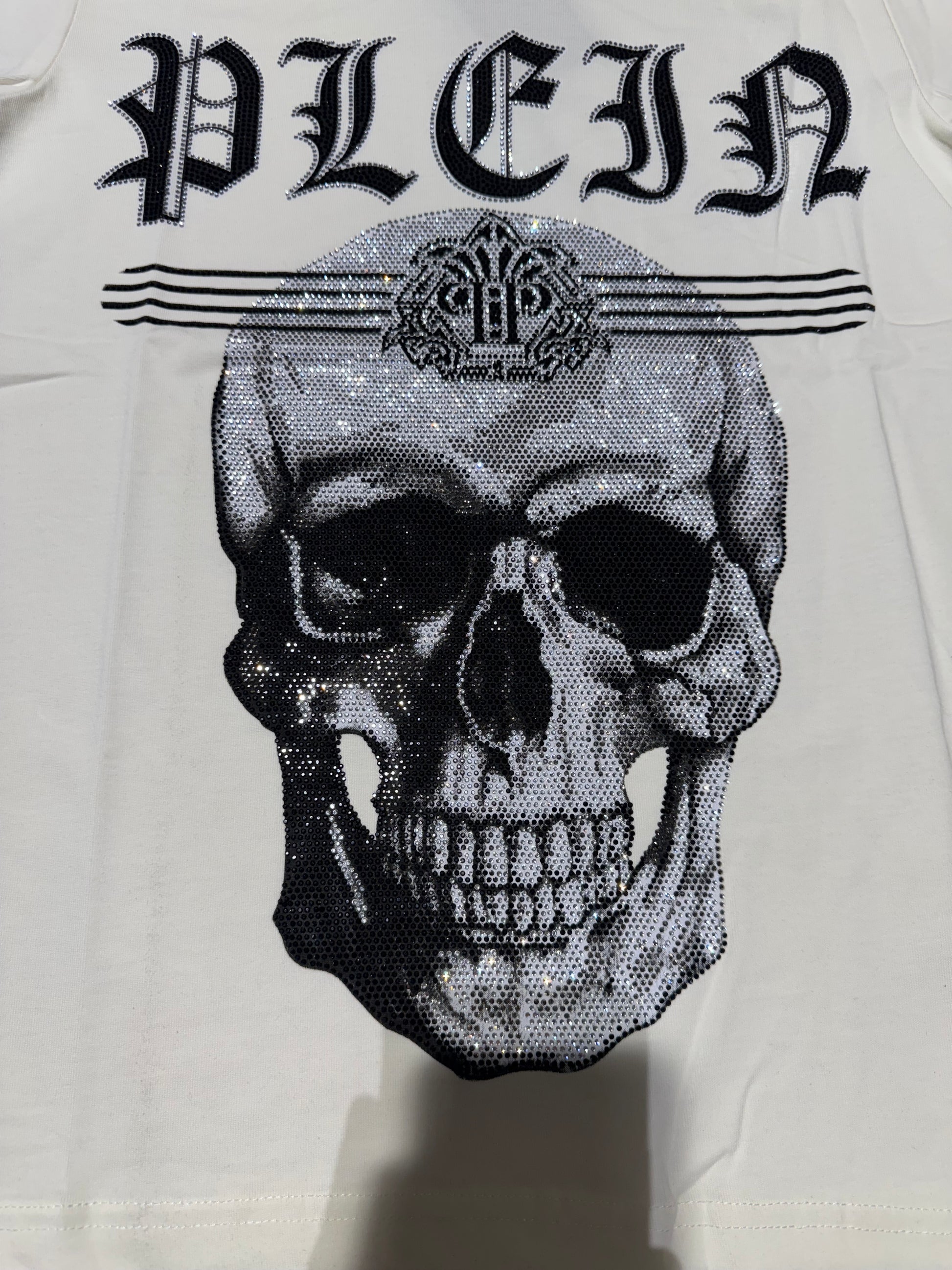 Expertly crafted from high-quality cotton, this qp philipp plein T shirt features a bold skeleton design. With a regular fit, it offers both comfort and style. Add a touch of edginess to your wardrobe with this statement piece.